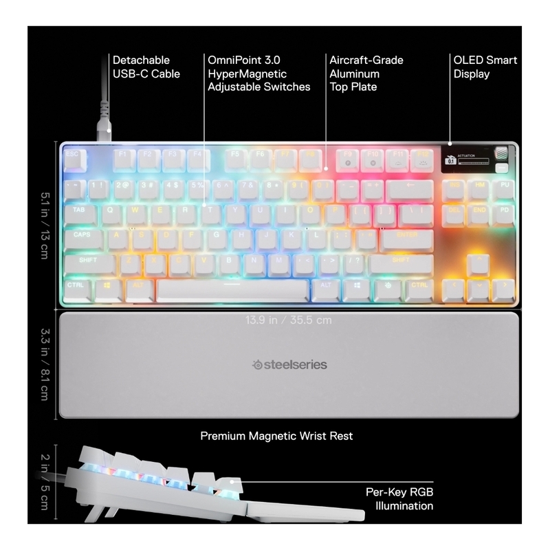 Steelseries Apex Pro Gen 3 TKL White Gaming Keyboard - OmniPoint 3.0 Adjustable HyperMagnetic Switches (US Layout)