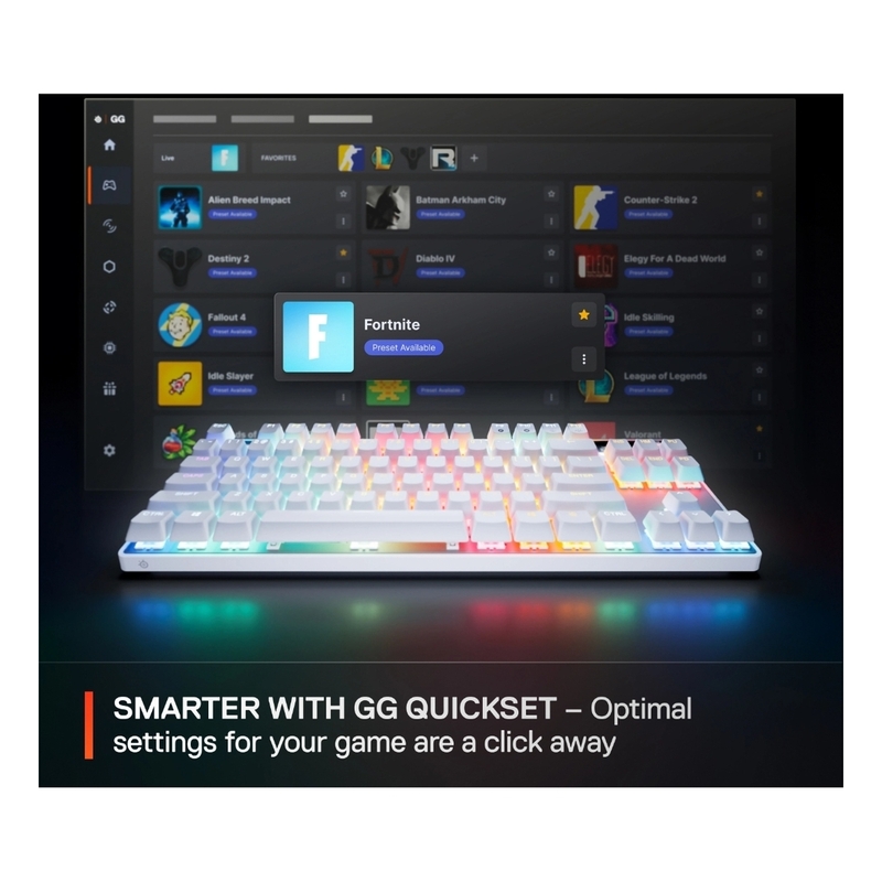 - GG QUICKSET — Game-ready presets for your favorite settings; recommended actuation levels, Rapid Trigger, Protection Mode, Rapid Tap and more with just a few clicks