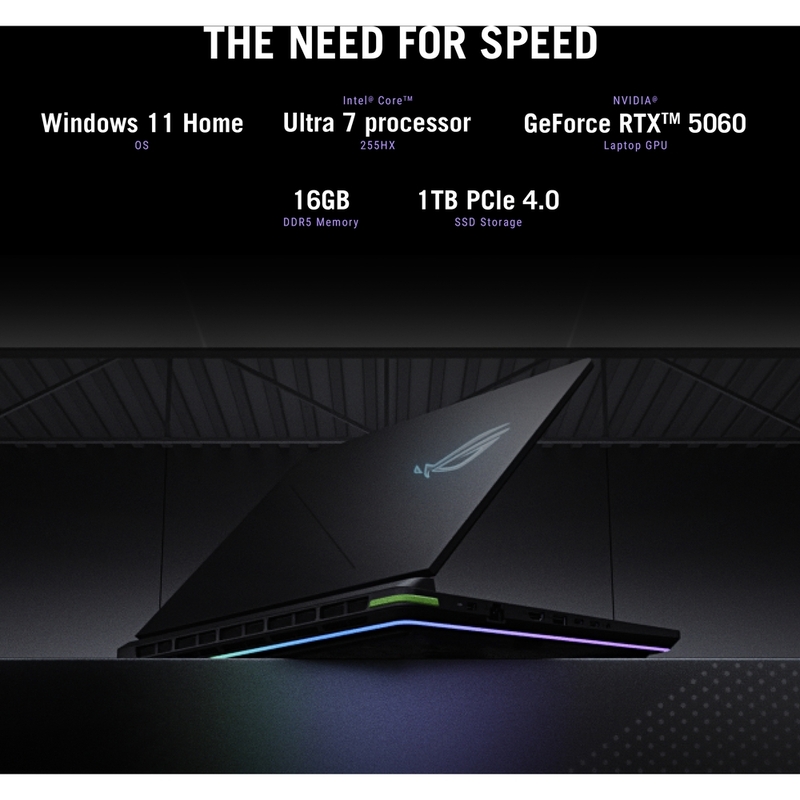 Game with confidence thanks to Windows 11 Pro and up to Intel® Core™ Ultra 9 processor 275HX. Backed up by the serious gaming muscle of up to NVIDIA® GeForce RTX™ 5080 Laptop GPU and up to 32GB of DDR5-5600 RAM, the 2025 Strix G16 has the perfect amount of power to keep you gaming at peak performance. With additional features like NVIDIA Max-Q technologies, including Advanced Optimus, NVIDIA DLSS 4 with Multi Frame Generation, and a 2TB PCIe Gen 4 SSD, the Strix G16 is truly a force to be reckoned with.