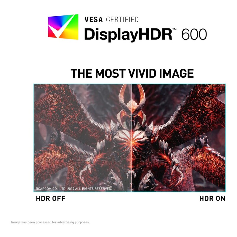 - VESA DisplayHDR 600 – Stunning visuals through contrast and shadow adjustment.