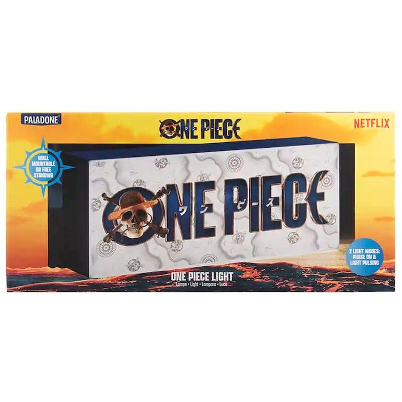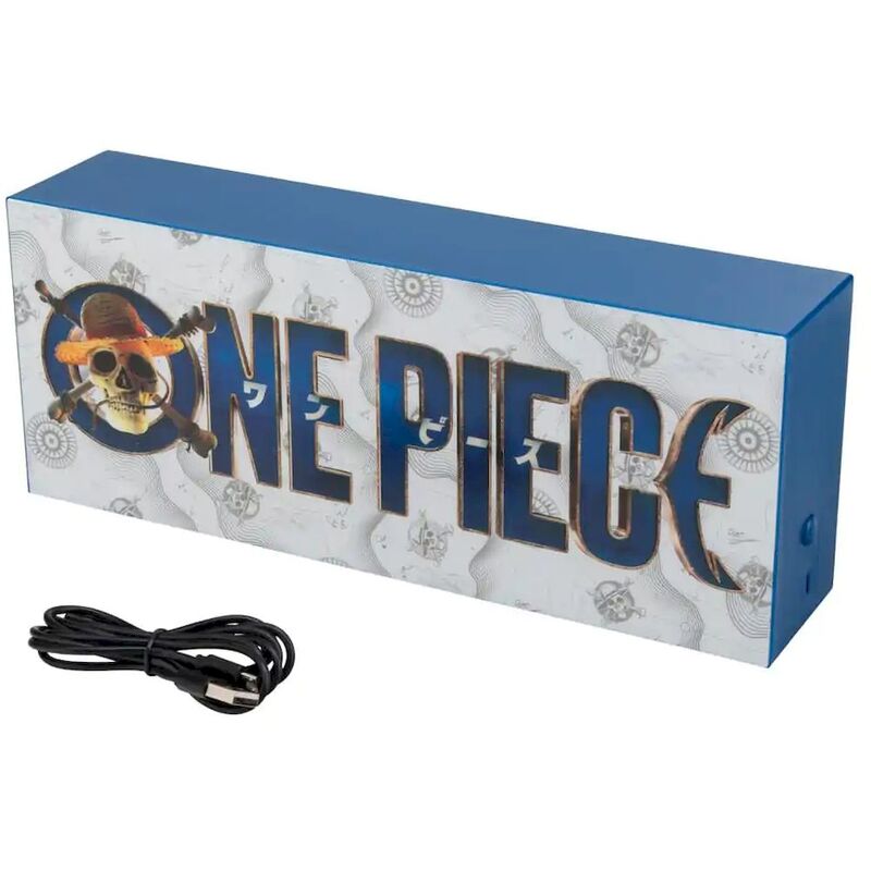 Brighten up your space with this One Piece Logo Light. The 30cm (12") wide light box showcases the iconic logo from Netflix's live-action One Piece series. The light can be wall-mounted (instructions included) or used free-standing. Plus, it includes phase on and light pulsing modes for added effect. Power your light with USB (cable included) or 3x AAA batteries (not included). The One Piece Logo Light will look great placed on your bedside table or perched on a shelf.
