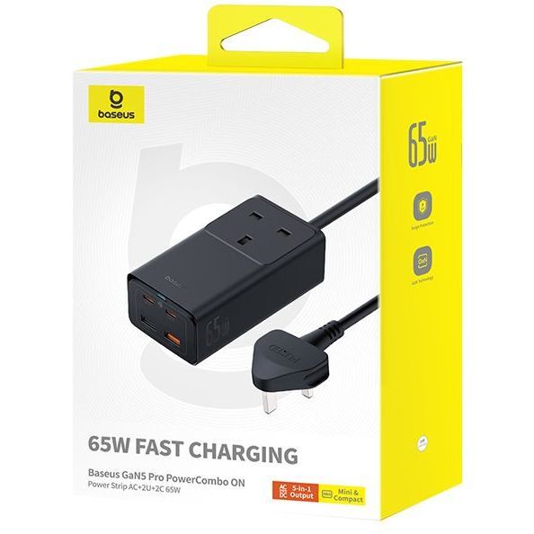 Baseus GaN5 Pro PowerCombo On Powerstrip AC + 2 USB-A + 2 USB-C 65W 1.5m UK - Black