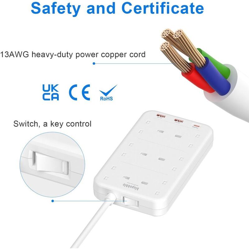 Blupebble 6 Plug Surge Protection Power Strip Pd20W USB-C + 2 USB-A Ports with 1.5M Cord Length