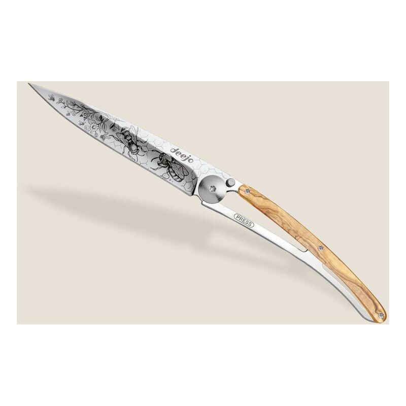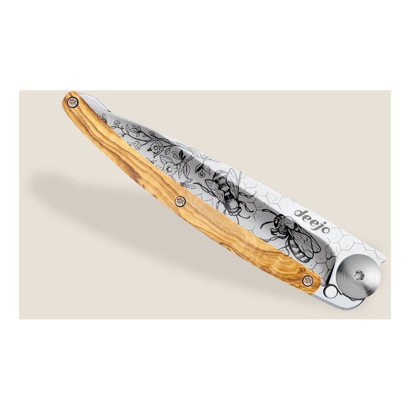 Deejo 37G Olive Wood Pocket Knife - Bees Light Brown