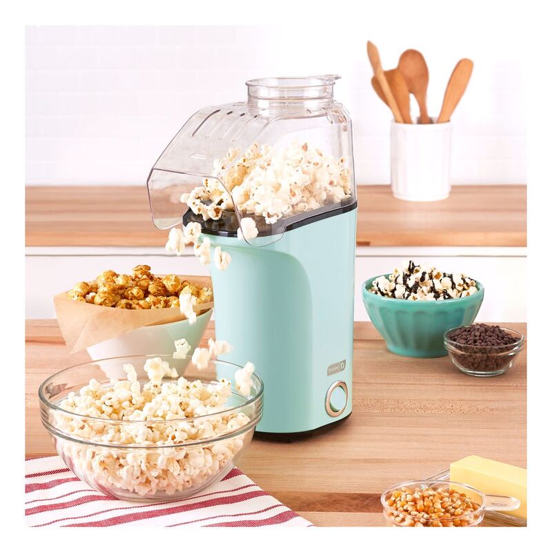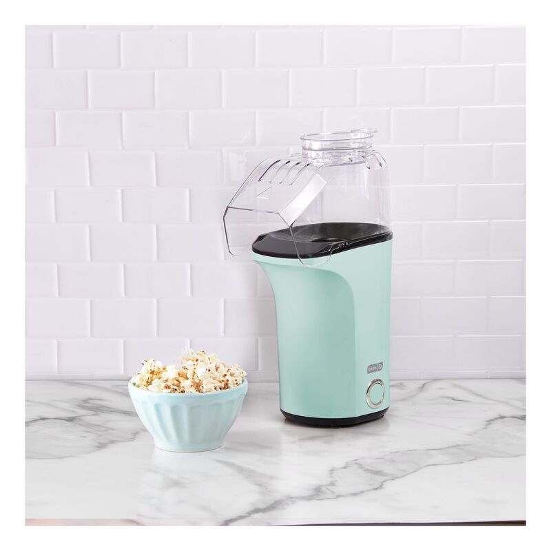 • Dash Fresh Pop Popcorn Maker, measuring cup, and recipe guide
