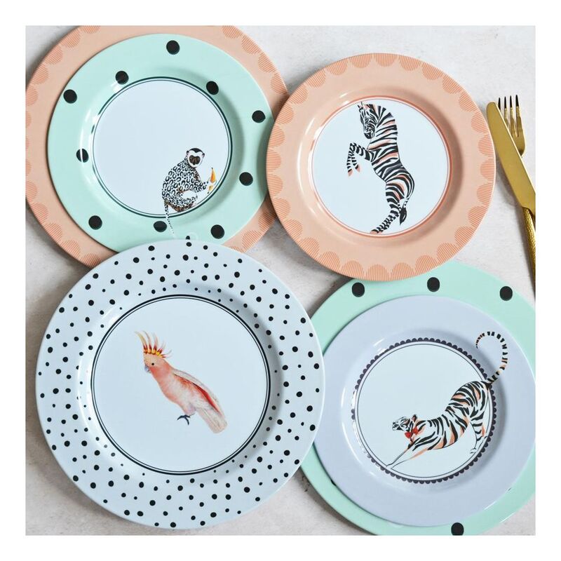These set of 4 melamine Yvonne Ellen plates would be a stunning addition to any picnic! Featuring her iconic animal prints! Dimensions 21.5cm