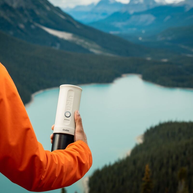 Weighing like a loaf of bread less than 700g, you can take Outin Espresso Machine anywhere for espresso with its travel-sized shape. With just one tap, you can start brewing your golden ratio coffee with a bottle-sized Outin at home or outdoors. Now, overpriced coffee and long waiting time at cafes is over.