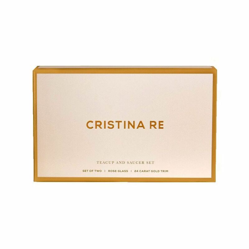 Entertain in style with this luxury duo Rose Glass Teacup and Saucer Set by Australian Artist and Designer Cristina Re. Celebrate with this range of vintage-inspired fine crystal glassware, paying homage to the classic glamour of High Tea. Enjoy a cup of tea and be inspired to enjoy a lifestyle of decadence and beauty. Experience the allure of this collectable piece from the Cristina Re High Tea Collection.
