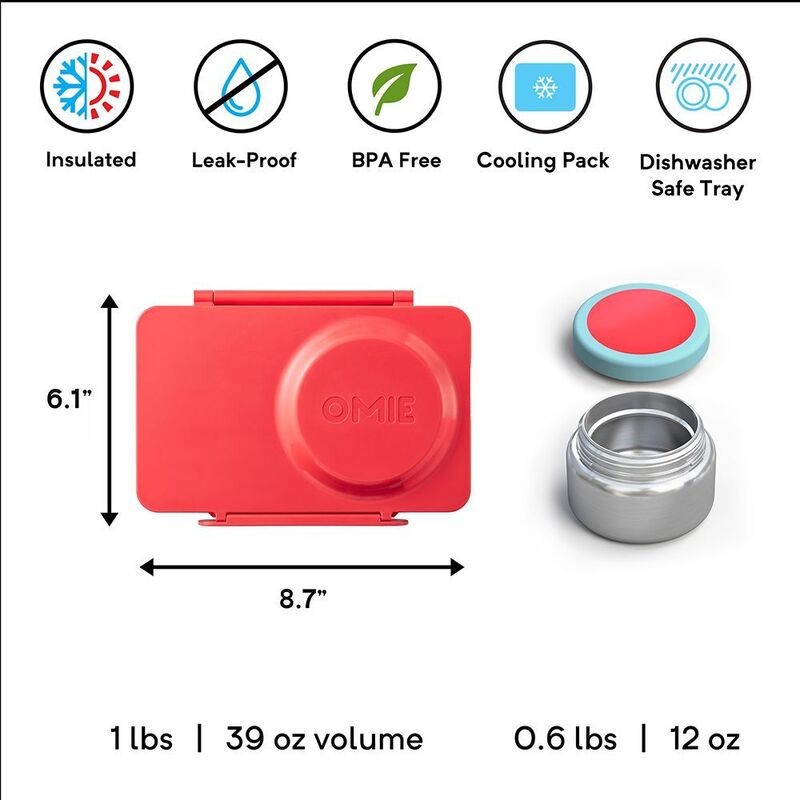 The Omiebox UP is designed to fit into your backpack. This streamlined and compact insulated bento box comes with a removable thermal jar, allowing you to keep hot and cold food in the same container. The thermos ensures warm meals, while the neighboring food stays cool in the air-insulated bento tray above a removable ice pack. Pack healthier lunches, including snacks, soups, salads, pasta, and more. The Omiebox UP maintains a more compact overall size compared to the previous Omiebox, featuring a larger thermos and fewer, but bigger compartments for added convenience.