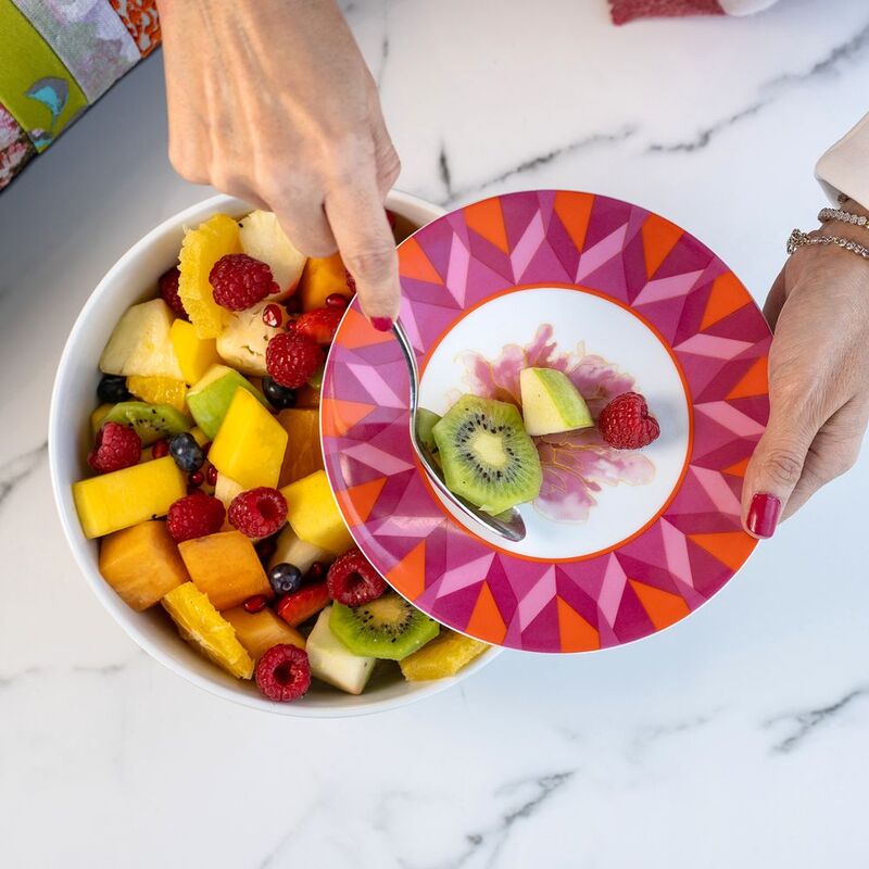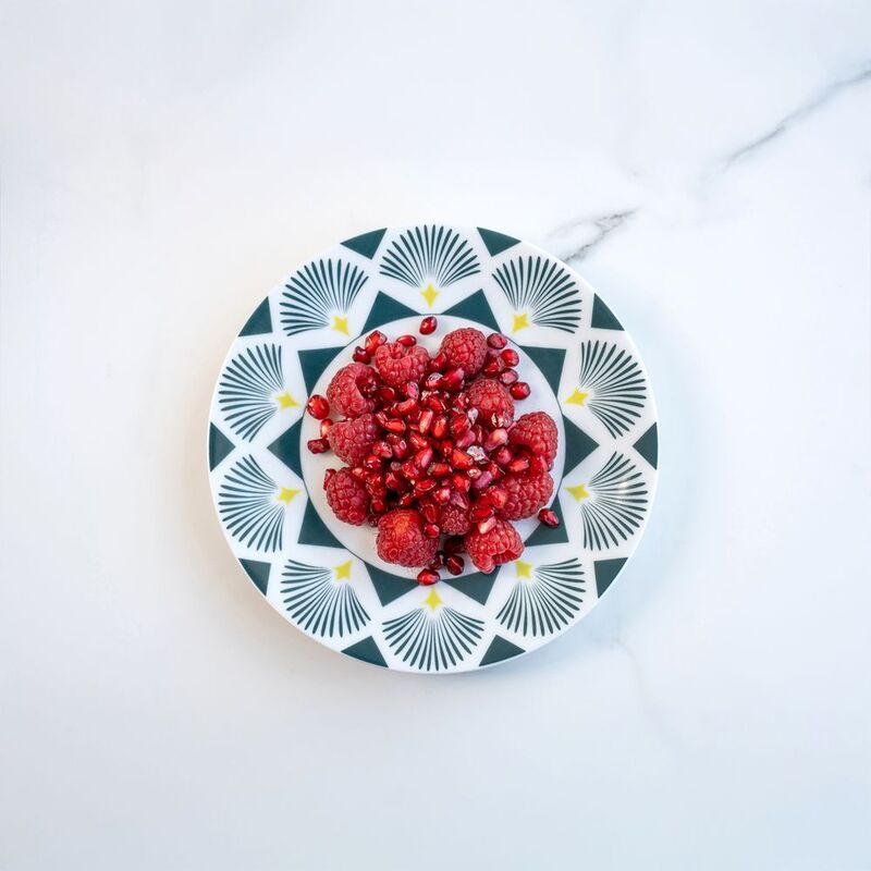 The Bahja Dessert Plate Set brings a burst of color and tradition to your table. Each plate features a unique blend of vibrant hues, Arabic calligraphy, and intricate arabesque patterns. Perfect for serving sweet treats or small bites, they add charm to any occasion. Mix, match, and celebrate culture with every bite!