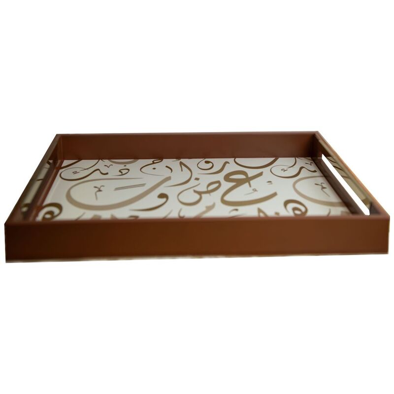 - White tray adorned with intricate gold Arabic letters for a touch of sophistication.
