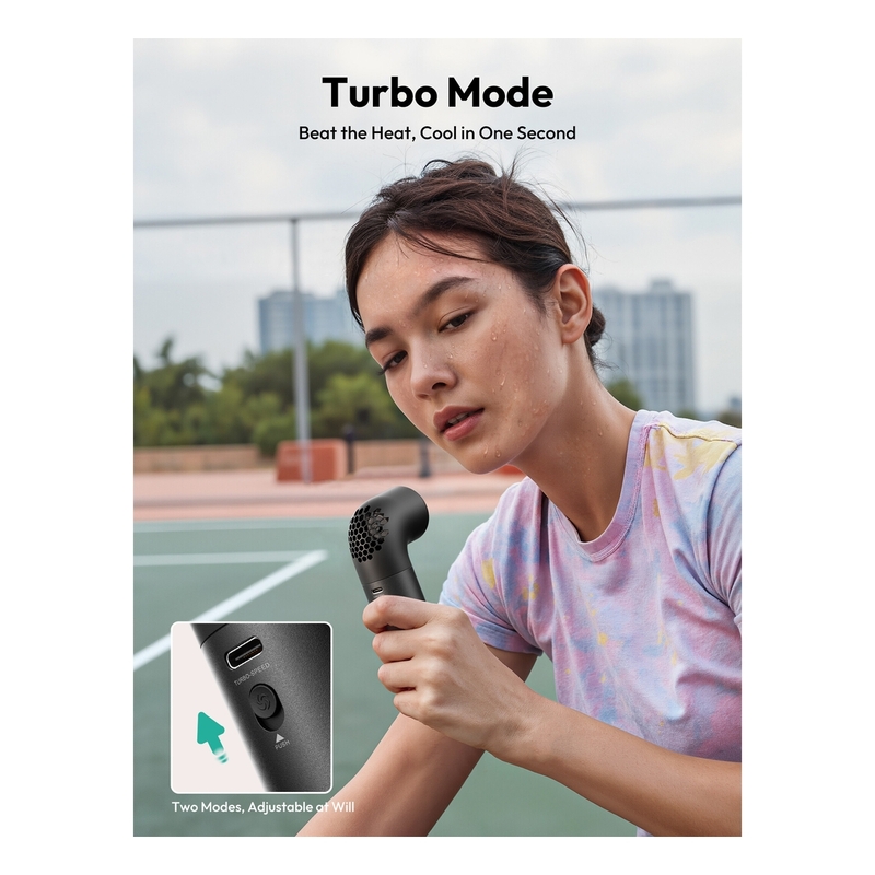 • Aecooly Mini Portable Fan powered by a robust Turbine Brushless Motor offers exceptional cooling performance with a maximum rotation speed of 19,000 RPM and wind speeds up to 11 m/s. It rapidly circulates powerful airflow, providing quick and efficient cooling, whether you're facing intense summer heat or seeking relief after exercise. The strong, invigorating breeze cools down your environment instantly, offering refreshing comfort that cuts through the heat.