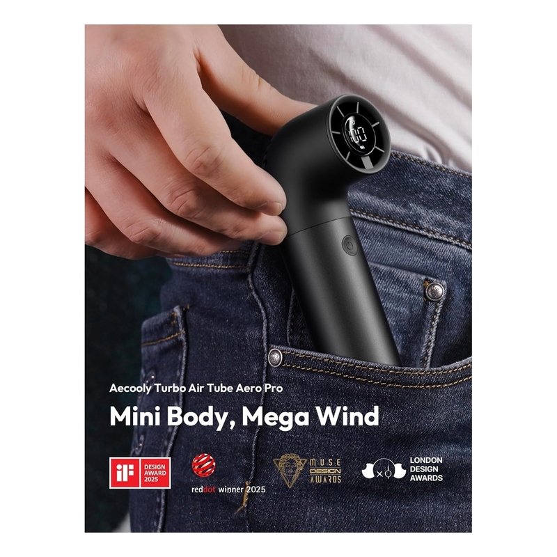 Stay cool anywhere with the Aecooly Mini Aero Pro. This compact, R-shaped handheld fan is powered by a high-speed 19,000 RPM brushless motor and offers dual-mode, 6-speed control with wind speeds up to 8 m/s for personalized cooling. The intuitive LED display lets you check speed and battery life at a glance, while the premium aluminum body combines durability with modern style. Its innovative honeycomb air intake enhances airflow efficiency, making it the perfect companion for outdoor adventures, travel, or daily use.