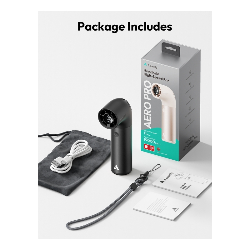Aecooly Aero Pro Handheld High-Speed Fan 19000RPM 6-Speed Aluminum Alloy - Black