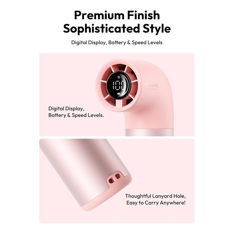 - Aecooly Rechargeable Travel Fan features a bright, intuitive LED display that allows you to easily monitor the settings with just a glance. The clear, user-friendly interface ensures you can adjust the speed, switch modes, or check battery life with ease. Whether at home, in the office, or outdoors, the LED screen offers clarity and simplicity.