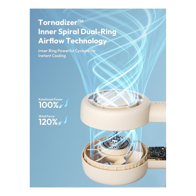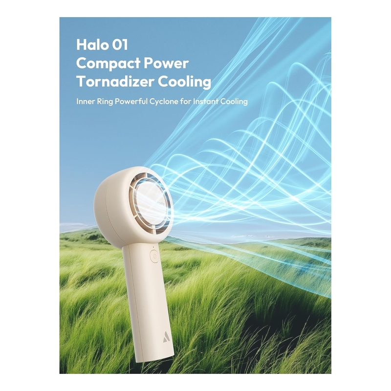 The Aecooly Halo 01 Turbo Fan features dual air channels for stronger, softer airflow and 5 adjustable speeds with easy power-off. With up to 16 hours battery life, it’s perfect for handheld or desktop use. Compact and travel-friendly, it fits easily in your bag to keep you cool anywhere.