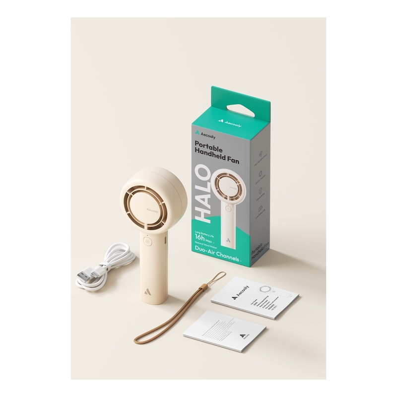 Aecooly Portable 16H Max Cooling Time 5 Speeds USB Rechargeable Handheld Fan - Beige