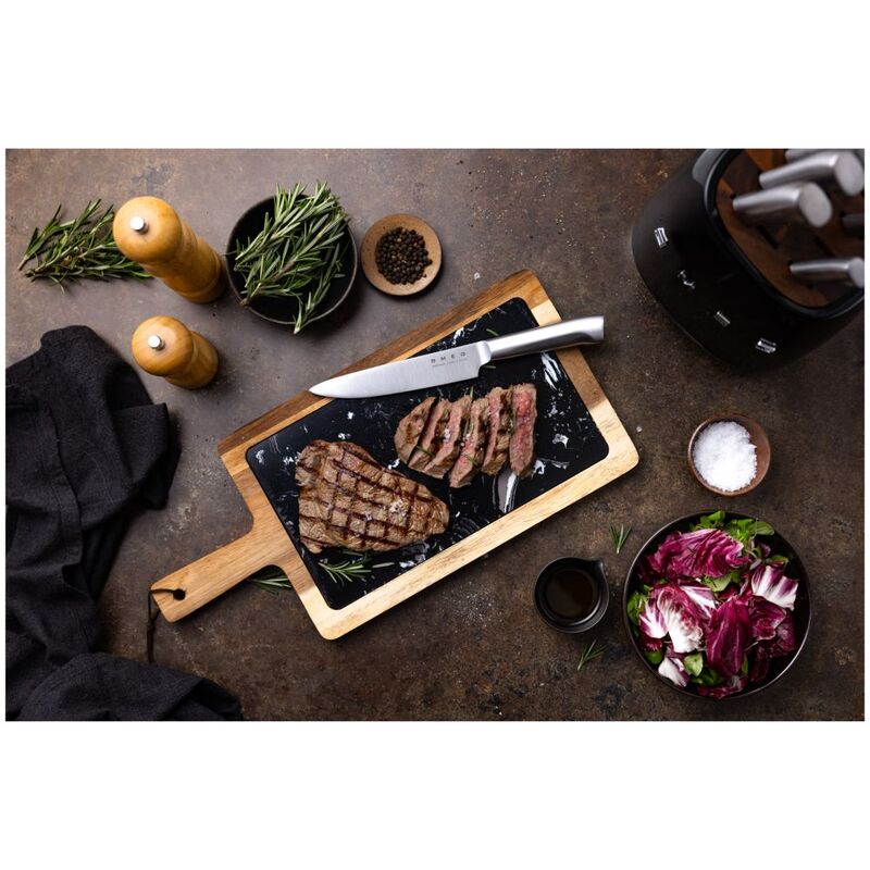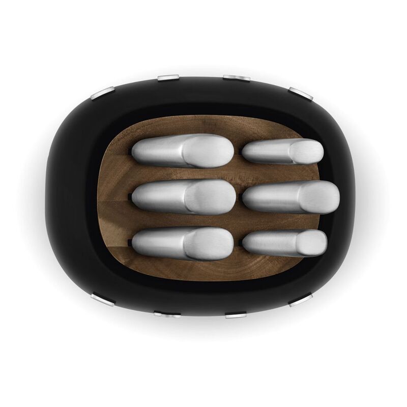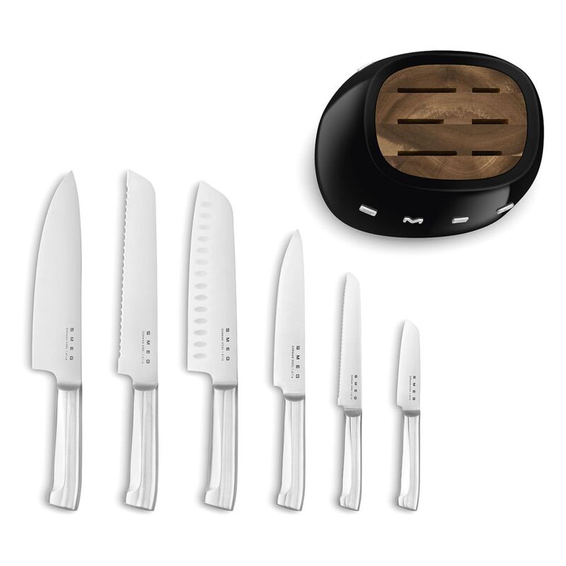 6 exclusive knives: a paring knife, a utility knife, a meat knife, a Santoku knife, a bread knife, and a chef's knife