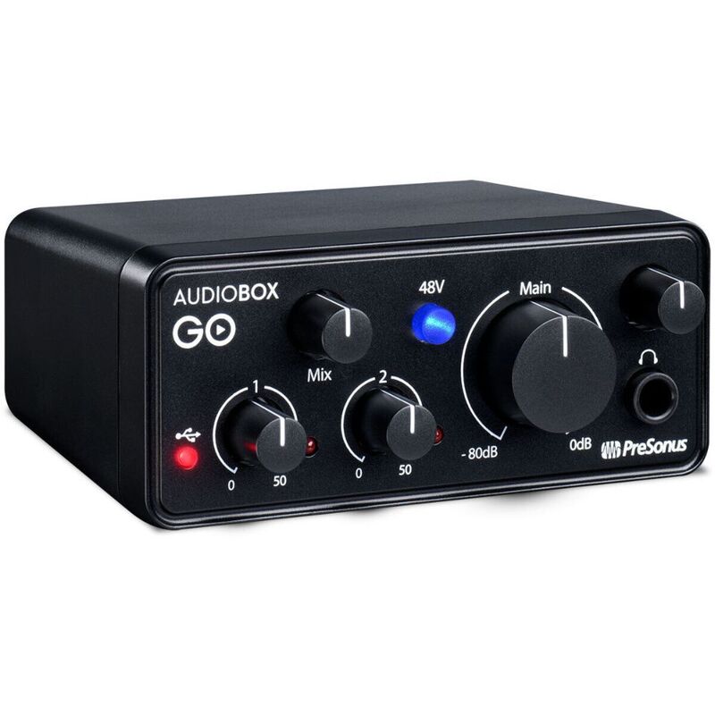 Grab and Go! With the PreSonus AudioBox GO, you can record wherever sound takes you. Track some acoustic guitar down by the lake, or lay down some soaring vocals in that super-reverberant stairwell in your friend's apartment building. Or collect some gritty samples for your next beat down at the subway terminal. AudioBox GO will get you out of the house and make recording the adventure that it should be.