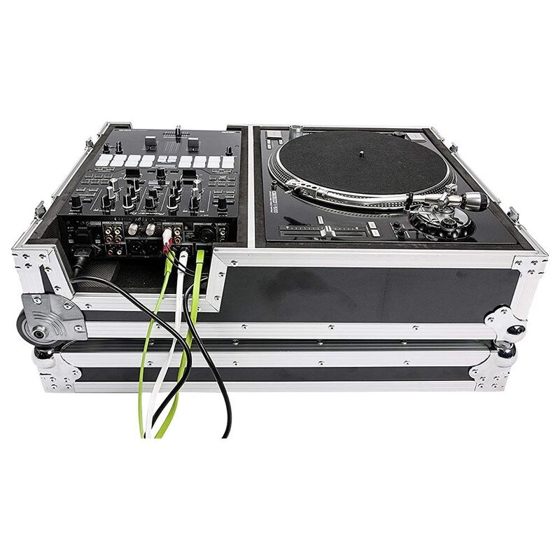 - Two individual, size-adjustable compartments for a turntable and a 10 "battle mixer