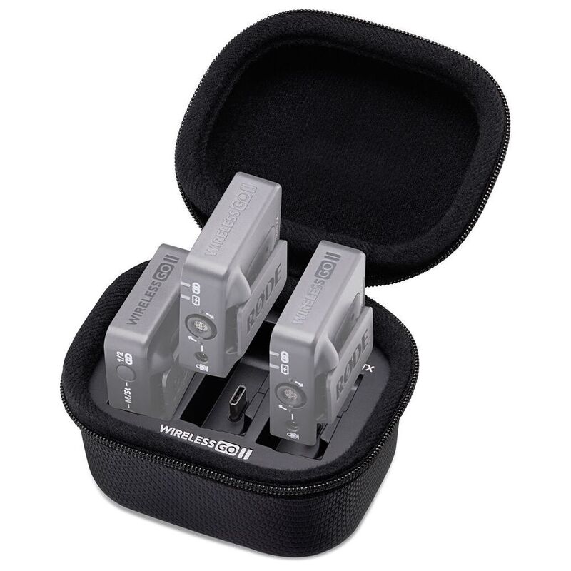 Keep your Wireless GO II microphone system safe and fully powered with the Wireless GO II Charging Case from RODE, a handy accessory that features a rechargeable internal battery that can facilitate up to two full recharges for up to 30 hours of continuous use in the field. This case accommodates both transmitters as well as the receiver. And with a rugged enclosure and zipper system, it simultaneously provides power and protection when your Wireless GO II system is in transit or storage.