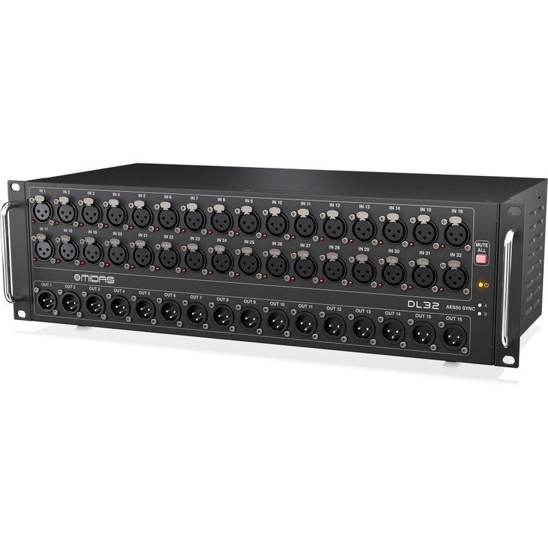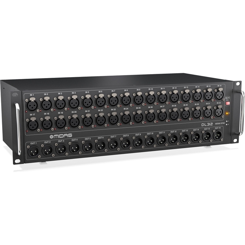 Digital mixing has revolutionized virtually everything in the live-entertainment production workflow. The DL32 is the perfect solution for connecting the onstage talent with your Front of House (FOH) console, and the rest of the world – the I/O packed and highly affordable DL32 digital stage box. The DL32 provides 32 Midas PRO Series remote-controllable mic preamps, plus 16 balanced analog XLR returns at the stage end – and all it takes is a single Cat 5e cable (up to 100 m / 328'). While Klark Teknik, the industry-leader in high-end digital audio processing, invented the AES50 SuperMAC technology that made it all possible – our superb scale of production makes the DL32 so very affordable.