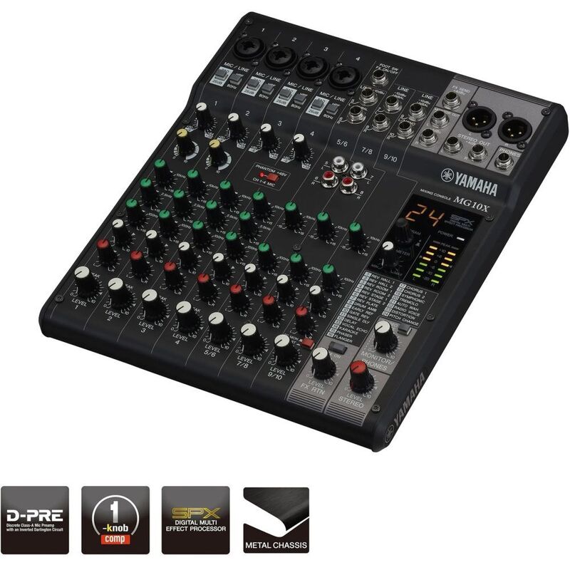 Features include studio quality preamps, powerful digital processing as well as a reliable construction. The intuitive interface on the MG10X gives easy access to all 10 channels with colour coded EQ and effects for all lines.