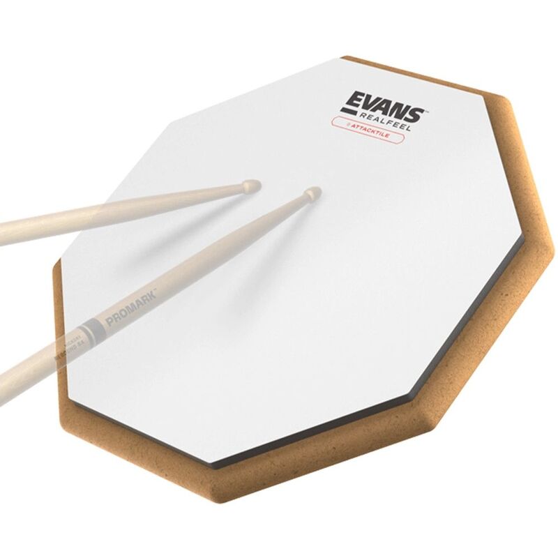 Attack your practice session with the Attacktile RealFeel Practice Pad. Featuring EVANS patented UV coating, Attacktile provides more attack, volume, and sonic feedback. RealFeel by EVANS practice pads are the most popular practice pad option available and are the best practice substitute to an acoustic drum. Attacktile is available as a single drum pad or in a Scholastic Pack, which includes the EVANS Apprentice Practice Pad stand and a pair of ProMark Rebound 5A Hickory Wood Tip drumsticks.