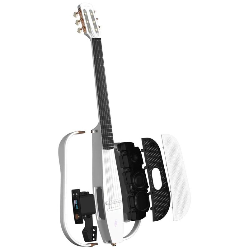 The Enya NEXG2 NW/H is a revolutionary nylon electric guitar that blends traditional feel with cutting-edge technology. Finished in elegant white, this next-gen smart guitar features a lightweight carbon fiber body, built-in effects, Bluetooth audio, loop function, and onboard speaker—perfect for players who want versatility and modern performance in one sleek package.