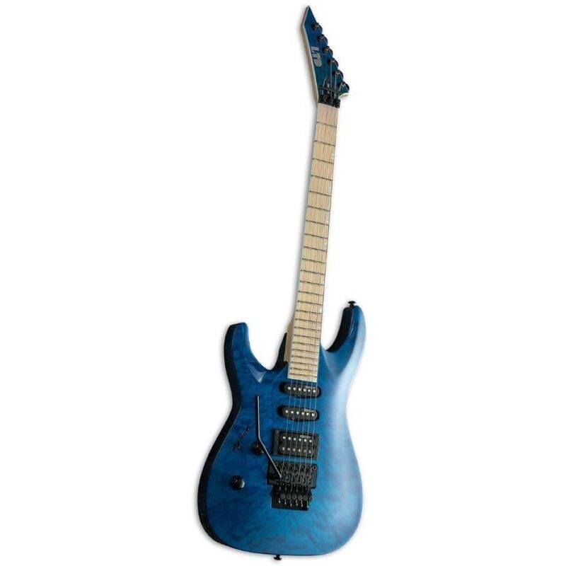 The ESP LTD MH-203 Lefty Electric Guitar blends the Horizon series’ arched top with M Series design, featuring a quilted maple top in See-Thru Blue. It has a versatile H/S/S pickup setup, a mahogany body, and a maple neck with a 24-fret fingerboard. The LTD by Floyd Rose tremolo offers tuning stability and expressive playability.