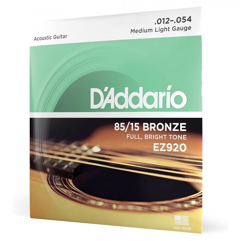 85/15 Bronze combines the brilliance of 80/20 bronze with the longer life characteristics of Phosphor Bronze. The 85/15 Bronze wrap wire is precision wound onto a carefully drawn, hexagonally shaped high carbon steel core, resulting in long lasting, bright sounding tone with excellent intonation.EZ920 strings are a D'Addario original hybrid gauge designed for players who want a balance of light gauge high strings for easy bending and medium low strings for heavy strumming.