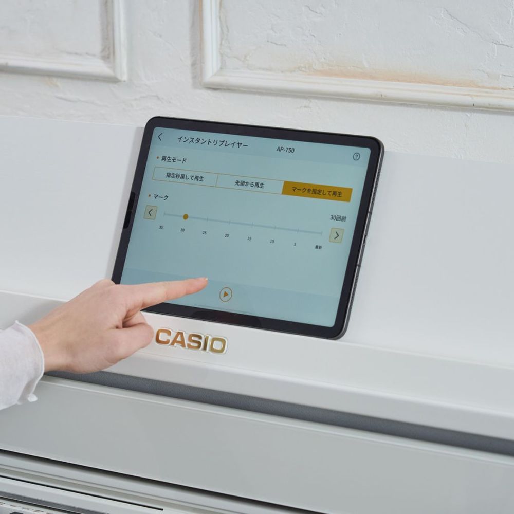 The Casio CELVIANO AP-750 blends grand piano tradition with modern innovation, delivering expressive power through the AiR Grand Sound Source with three distinctive piano tones, including the Berlin Grand co-developed with C. Bechstein. The Smart Hybrid Hammer Action Keyboard with spruce-resin keys and counterweights ensures authentic, responsive playability, while a Grand Phonic 4-channel, 8-speaker system produces immersive resonance with balanced sound at any volume. Its refined three-pedal system offers delicate, continuous control for expressive performance, and with Instant Re-Play, Visual Information Bar, wireless connectivity, and CASIO MUSIC SPACE app support, the AP-750 redefines the piano playing experience at home.