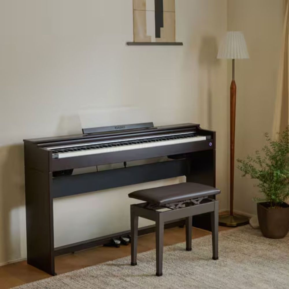 The Casio CELVIANO AP-S200 delivers the rich, expressive sound of a grand piano in a compact, elegant design perfect for any room. Its Multi-Dimensional Morphing AiR Sound Source, String Resonance System, and Mechanical Sound System reproduce authentic tonal nuance and resonance. The Smart Scaled Hammer Action Keyboard with ivory-like and ebony-like keys offers responsive, luxurious playability, while three pedals expand expressive possibilities. A 2-channel/2-speaker system with Volume Sync EQ and customizable Sound Mode ensures immersive and balanced sound. Wireless MIDI & Audio Adaptor and CASIO MUSIC SPACE app support enhance practice, recording, and performance flexibility. Combining tradition, technology, and style, the AP-S200 makes playing a piano a natural and inspiring experience.