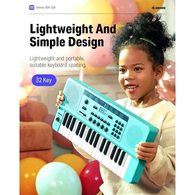 - Lightweight & Portable: DEK-32A 32keys electric keyboard has suitable keyboard spacing and can be easily played with a suitable force. It is not easy to pinch hands during practice. Which can be easily carried at any time.
