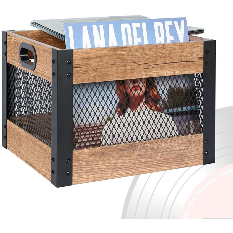It can easily display up to 65 vinyls upright. The Record Crate has comfortable handles, so it can be moved easily. Premium material, exquisite metal wood with strong wires. Bold and hardened metal grid panel with black plastic coating making it very sturdy, durable and easy to install.