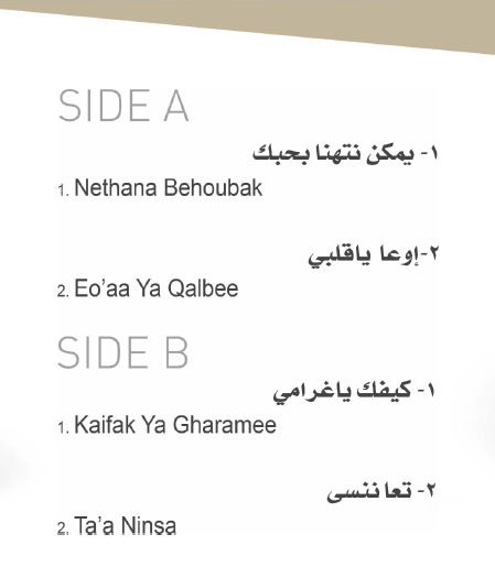 A collection of songs in a CD in honor of the late Lebanese singer Melhem Barakat, this piece is a work of art that combines the most beautiful songs in his voice. It has four of his favorite songs, two on one side and two on the other. It is the best anecdote to remember one of the prettiest voices in Arabic music history.