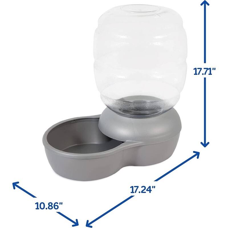 Gravity Waterer: This 4 Gallon cat and dog water bowl dispenser slowly dispenses filtered water to prolong time between refills. Perfect for pet parents with busy lifestyles. Use with replaceable Petmate Replendish charcoal filters