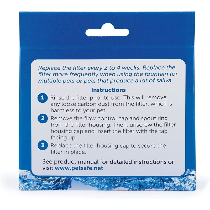 Drinkwell 360 Replacement Filters keep your pet's water clean and fresh. Thanks to a duo-density polyester pad that captures debris in the drinking water, your precious pets will have a fresh and clean source of drinking water every time they feel the need to drink. These replacement Drinkwell fountain filters feature granulated carbon that extends the action of these filters. The Drinkwell 360 Fountain is beneficial for both dogs and cats and is ideal for households with multiple pets, as it allows for more than one pet to drink at the same time. By encouraging pets to drink more water, this 360-degree fountain promotes better hydration for better overall pet health. Provide your favorite furry, four-legged friends with the clean and fresh drinking water they need and deserve today with a Drinkwell 360 fountain. Then, maintain your pet fountain regularly with new pet fountain filters and ensure maximum filtration from your Drinkwell 360 fountain. These filters are intended for use with the Drinkwell 360 Fountain, sold separately.For best results, fountain filters should be changed every two weeks depending on the size and number of pets using the fountain.