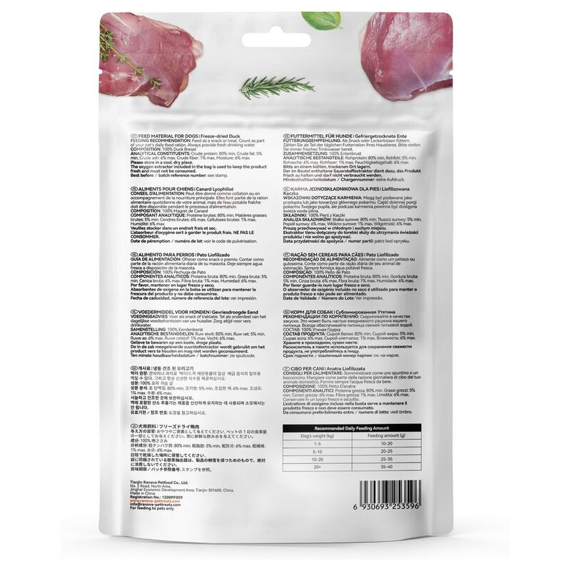 Freeze-dried duck for dogs offers a premium and nutrient-rich protein source derived from real duck meat. Through a meticulous freeze-drying process, the duck is preserved at low temperatures while moisture is gently removed, locking in its natural flavors, essential nutrients, and texture. This option is highly favored by dog owners seeking to provide their furry companions with a wholesome, minimally processed treat or meal.