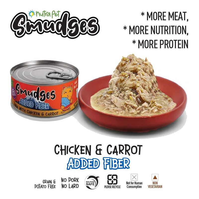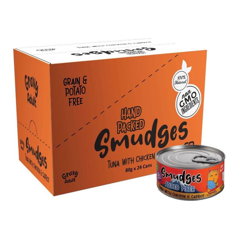Smudges Adult Cat food Rich in Fiber - Tuna Flakes with chicken & carrot - 80g Can