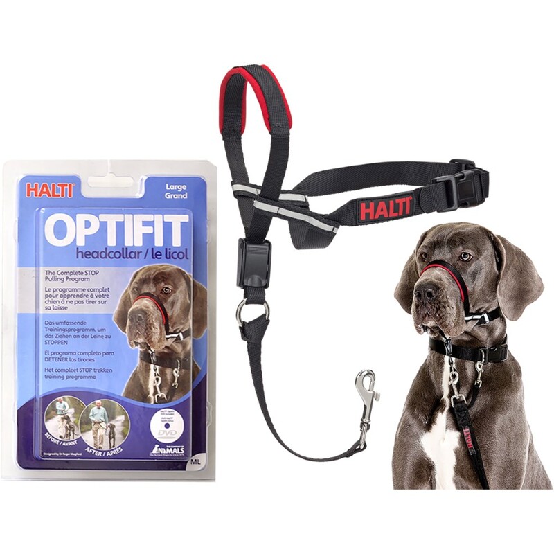 The Halti Optifit Headcollar for Dogs is a complete program to stop your dog from pulling all in one. The unique design gently steers the head to control the dog