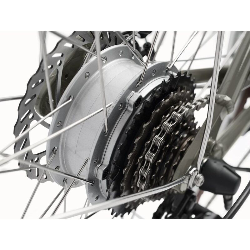 - The E-bike System by Electra proves spirit and control with three modes of power support with a rear hub motor and is coupled with a 7-speed derailleur for additional range.