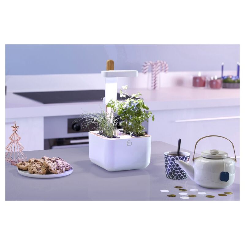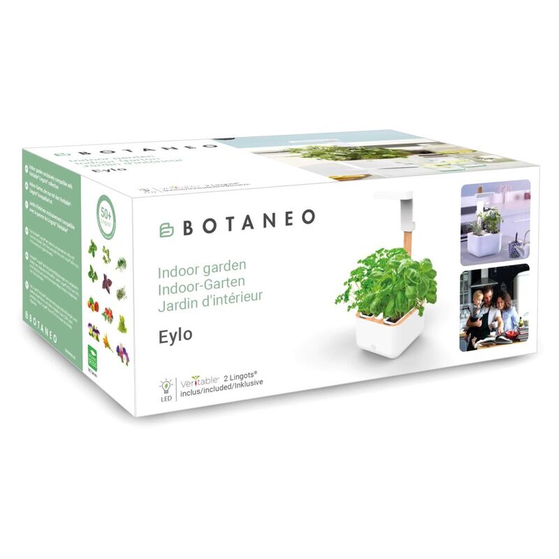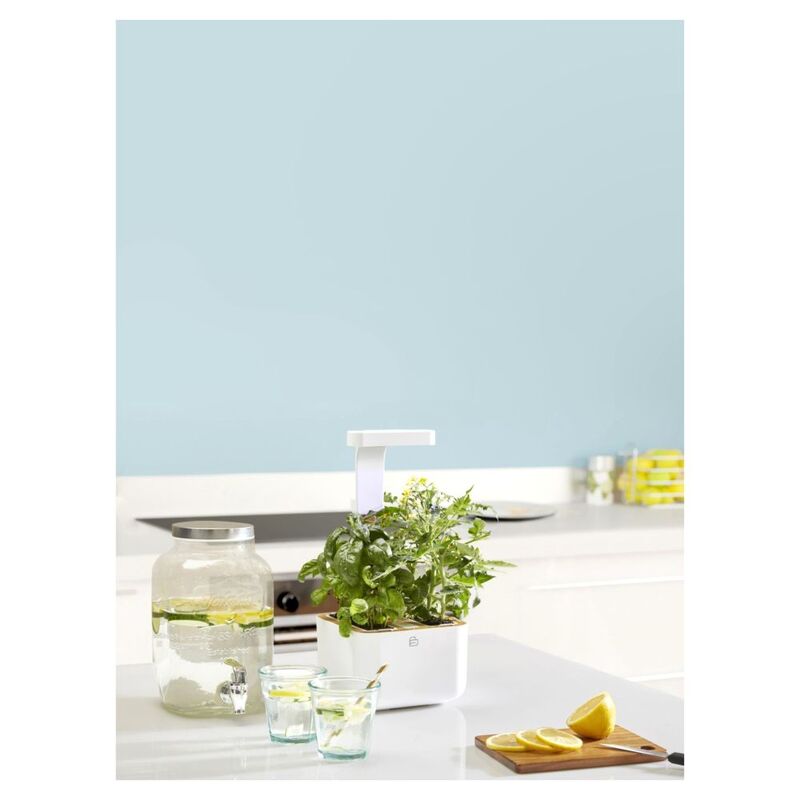 The LED growth lamps ensure faster growth and faster aroma development of your plants. The lighting is automatically controlled: it switches on for 16 hours a day and switches off for 8 hours a day to imitate the natural cycle of plants. Best of all, the compact and slim design of the Botanéo Eylo fits onto any kitchen counter.