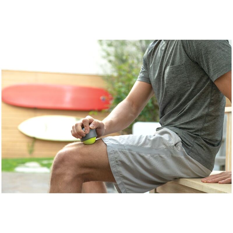 The TriggerPoint Handheld Massage Ball provides an easy self-massage and on-the-go pain relief. Compact size makes the Handheld Massage Ball conveniently portable fitting into a purse, gym bag, briefcase or carry-on bag to provide on-the-go pain relief. Ergonomic contoured handle makes it easy to use and fit comfortably in the hand. Handheld roller allows you to apply the desired amount of pressure, varying from light surface pressure to deep into the muscle tissue. The non-friction ball glides smoothly over bare skin or clothing without resistance. Firmly press the rubber button on top of the roller to stop the ball from moving creating a cross-friction massage for added relief. Constructed with high-quality materials that are resistant to cracking or splitting. Measures 3 inches x 3 inches and weighs 0.5 pounds making it conveniently portable. Product is backed by a one-year limited manufacturer's warranty.