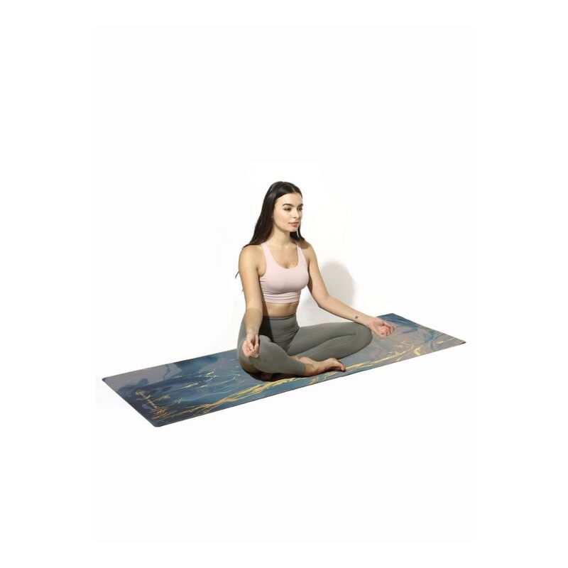 Shakti Warrior Ananda Ajna Natural Rubber Yoga Mat - Blue (Wanderlust Travel Edition) (72-Inch x 24-Inch x 1mm Thickness)
