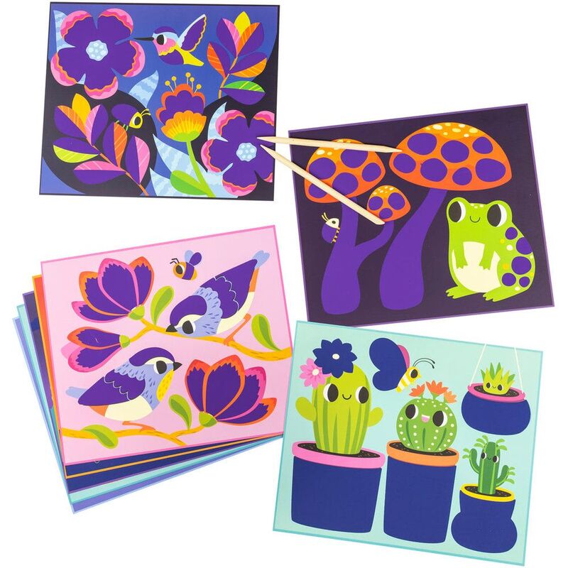 Little ones can let their imagination run wild as they scratch off special sections of each art card using the included wooden etching tool, to reveal the super vibrant, beautifully illustrated garden scenes hidden below. Go for a simple scratch-and-reveal or create amazing patterns, draw shapes or add decorative flourishes - it's simple to complete and completely satisfying!