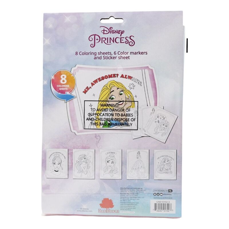 Delight your child with this enchanting Disney Princess set. Featuring eight colouring sheets, six vibrant markers, and a charming sticker sheet, this set encourages creativity and imaginative play. Designed for young artists, it is an excellent way to enhance fine motor skills and artistic expression. Perfect for family bonding time, this set brings a touch of royal magic into your home.
