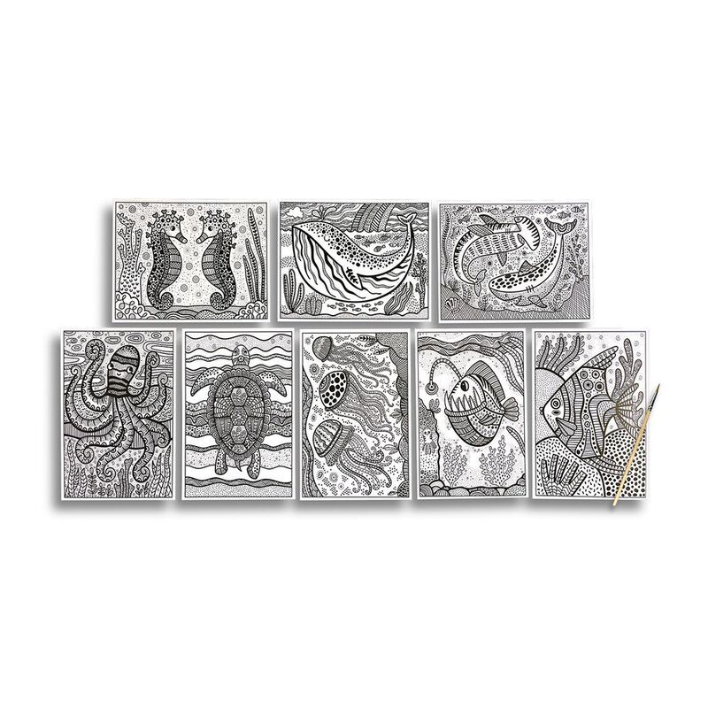 The illustrations in these water reveal sheets have a big secret-a vibrantly colored painting! This ocean themed activity just needs water to bring out all of those hidden hues! Eight magic painting sheets and a paintbrush are included in every kit.
