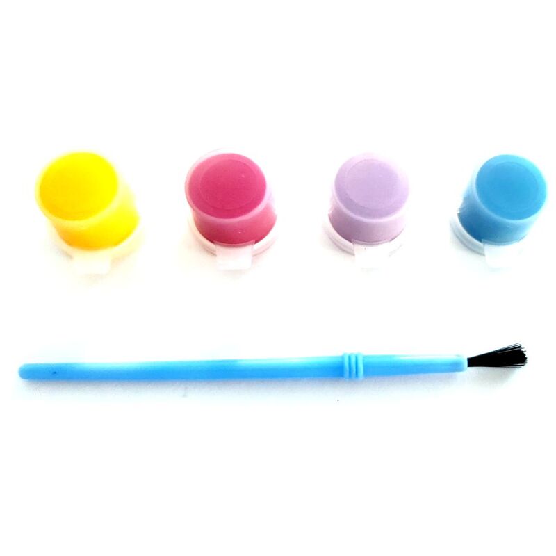 including 1 art Board, 4 paints, 1 paintbrush,its easy to follw color keys