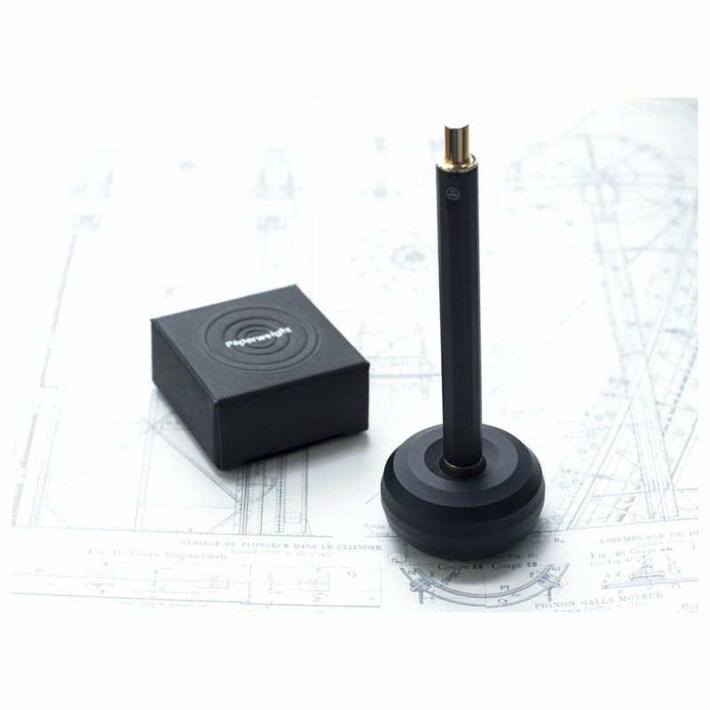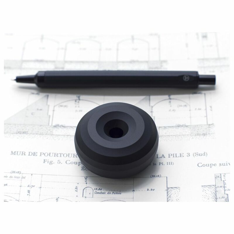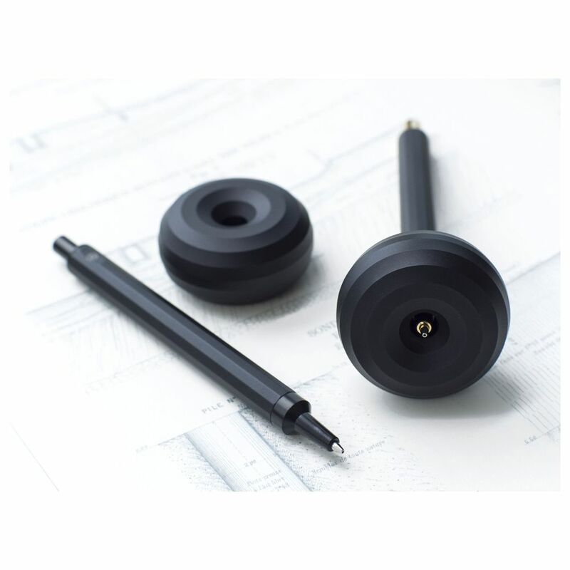Paper weight is also the pen holder. This donut-look tool features the 12 bevel faces commonly seen in HMM classy work series. It is fully made of aluminum alloy for a firm grip. Combining with a pen, it turns into a unique beautiful accessory with its voluminous quality. Free your thoughts anywhere anytime with this stunning company.